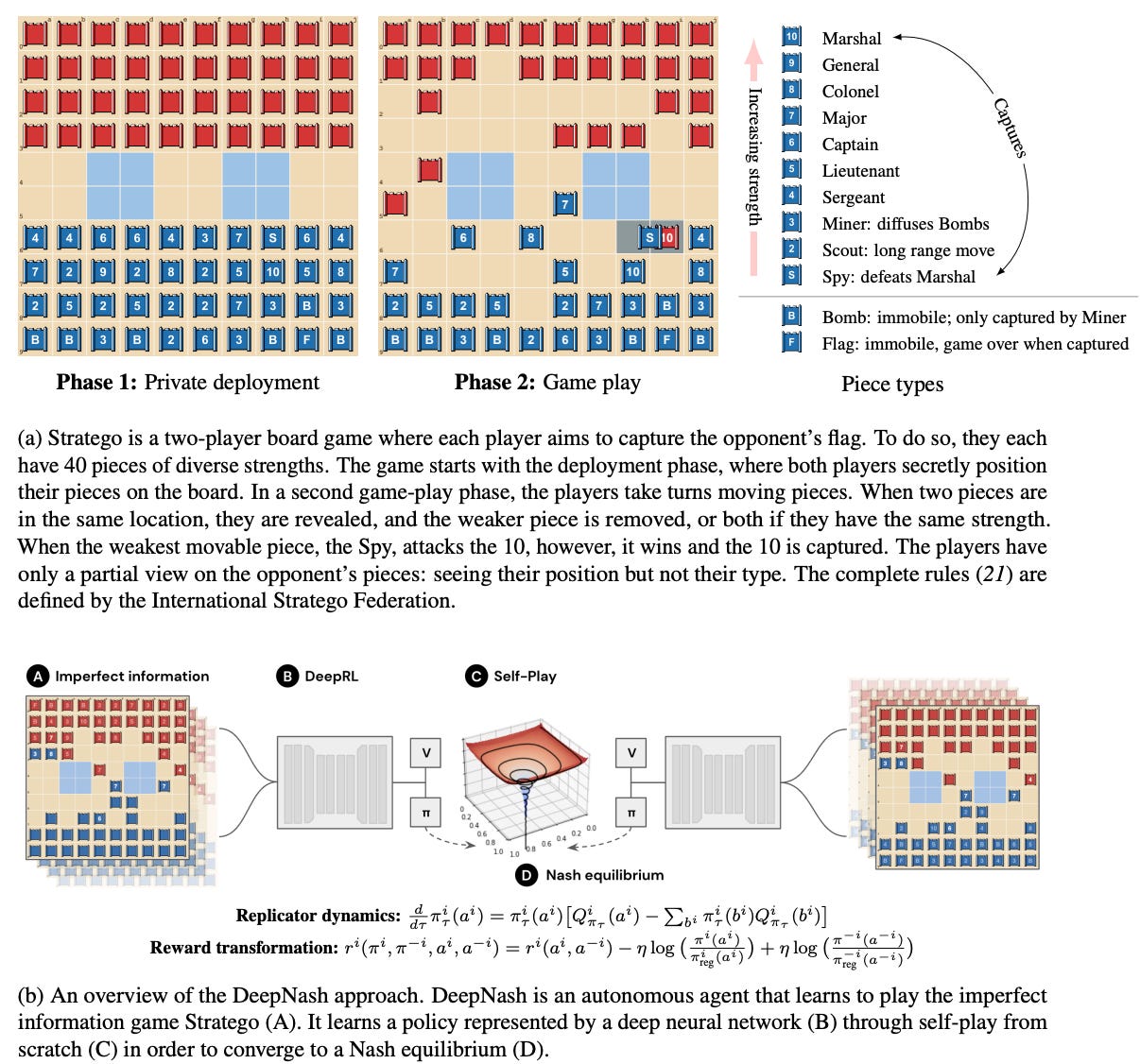 https://arxiv.org/abs/2206.15378: DeepMind’s most recent AI system DeepNash has learned to play the strategy game Stratego at the level of a human expert. Stratego requires complex decision making under uncertainty and until recently has been resistant to AI solvers.